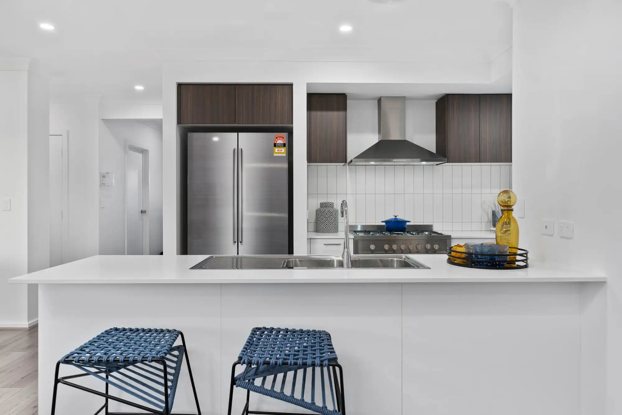 - 20mm Caesarstone arris edge benchtop in Builders range of colours. Benchtop into window subject to kitchen design.