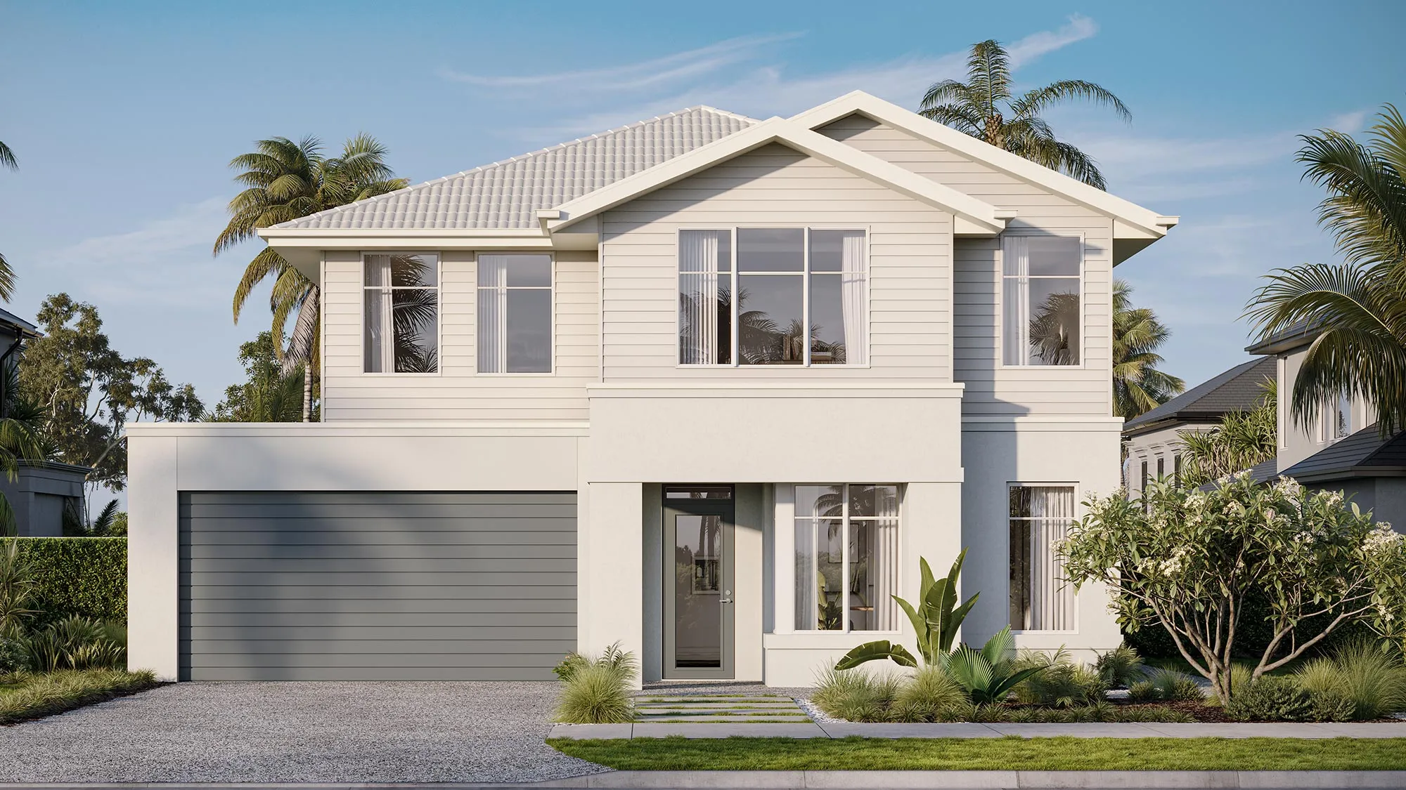 The Headland 43 double-storey house design, sprawling across a generous 14m+ block, introduces a sophisticated blend of contemporary style and practicality with 5 bedrooms, 4 bathrooms, and 3 living spaces. This home captivates with its open-plan heart, complementing an active family lifestyle, while a private office and a downstairs guest suite cater to every practical need. Upstairs, a secluded wing for secondary bedrooms contrasts with a vast master suite boasting double walk-in robes and an ensuite, epitomising the pinnacle of private luxury living.