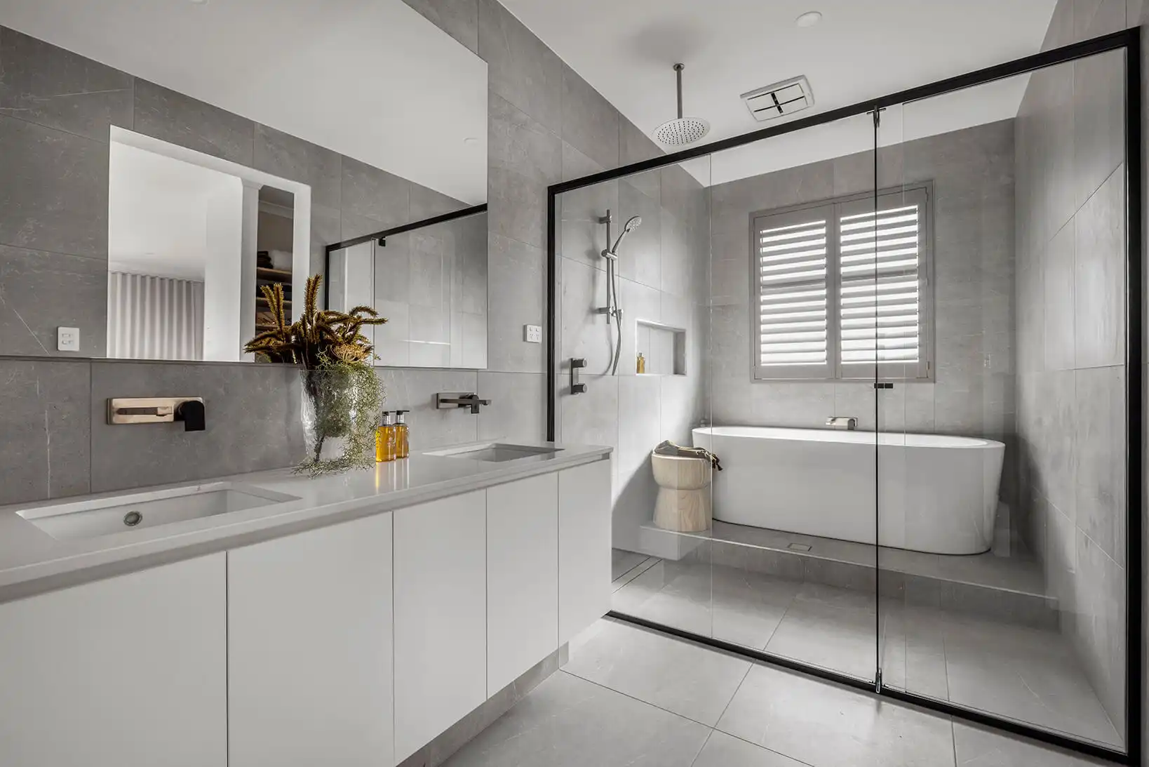 a. Review your builder’s standard inclusions: Items such as basins, bathtubs, showers, toilets and tapware tend to be included in the home’s base price. But bathrooms and ensuites are also rooms where customers look to incorporate upgraded features such as semi frameless shower screens, freestanding baths, double vanities or feature tiles. Â