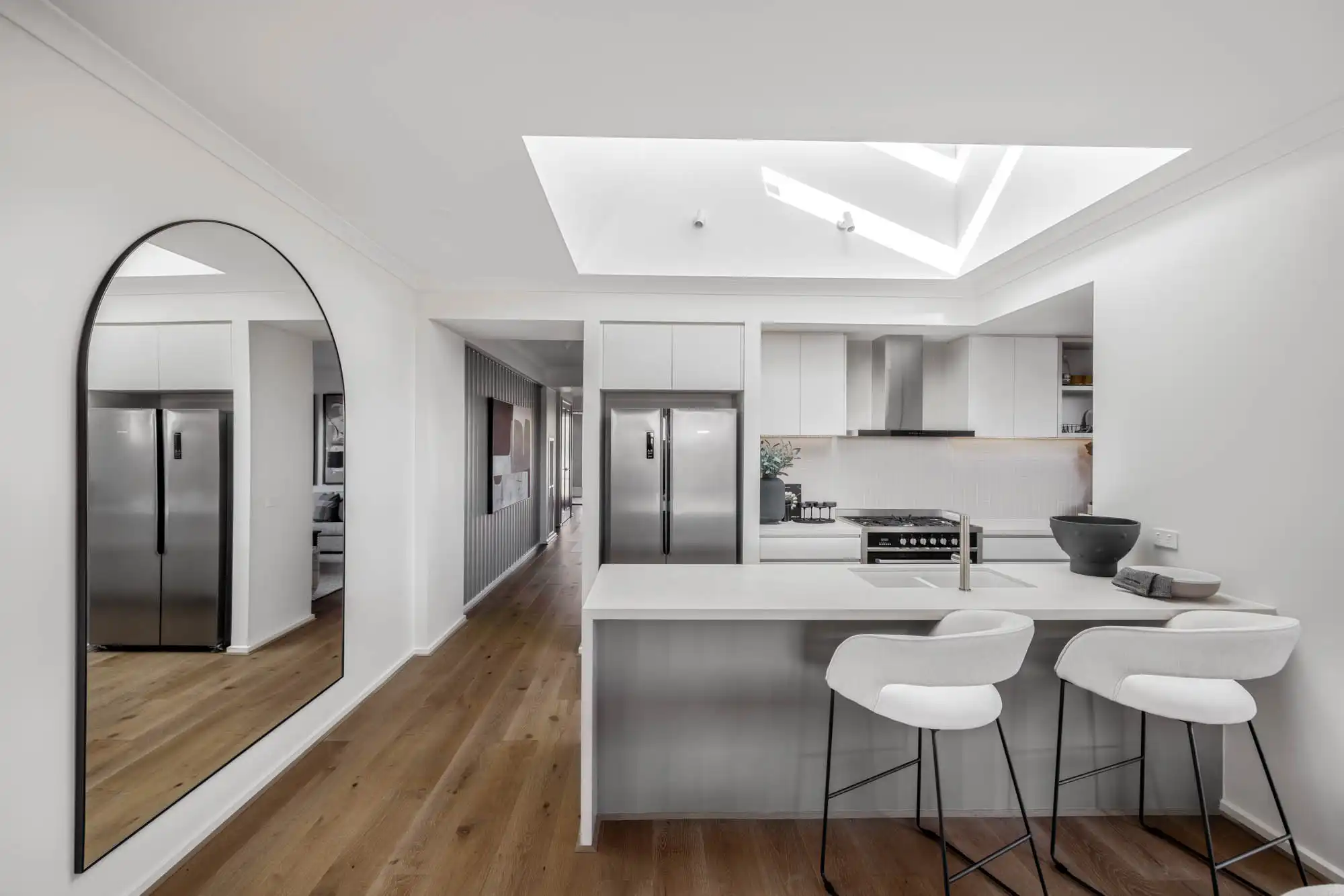 The colours and textures of your home’s decor will appear ‘more true’ and vibrant with greater exposure to natural light and less reliance on fluorescent or LED lighting sources. As the day goes on, light intensity can change and shift, impacting the appearance of the colours within your space. This comes down to the sun's orientation and the direction that your skylights face. Our expert Gallery team will take this all into account when they're helping you to select all of the products for your space. With a naturally well-lit space, you can opt for bolder and darker hues with greater confidence, or on the other hand, add a greater sense of depth and shadow play to a neutral palette.Â