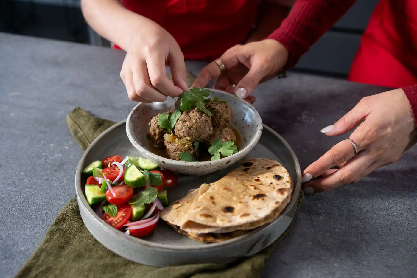 From forming the meatballs from scratch to rolling out the roti and squeezing fresh lemon juice, there's lots of opportunties for the kids to get involved and get their hands dirty — without you having to worry about the little ones being around sharp utensils or hot pans.