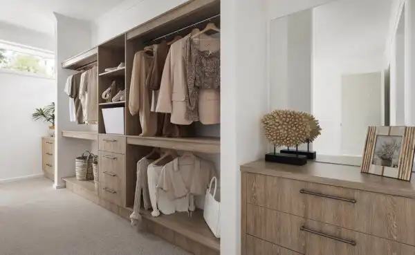 The Alexandra home in Clyde North offers a spacious walk-in robe that is the ideal setup to purge the old and organise what matters.