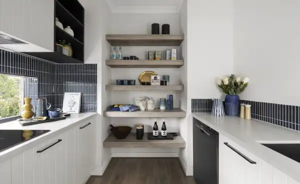Don't forget the smaller spaces. The Elmhurst, displayed in Donnybrook, shows that even compact areas can be optimised for efficiency and beauty. Add shelves or over-the-door hooks to maximise space in your home.