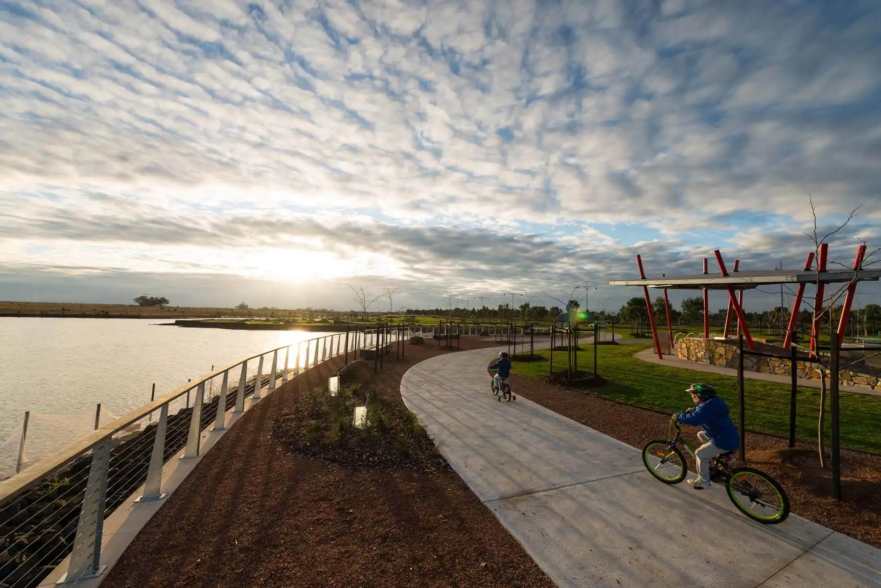 Harpley, set in the heart of Werribee, 3030, is building a lakeside neighbourhood that harmonises the serenity of nature with the convenience of urban living. Just 35km from Melbourne's CBD and moments from Werribee's vibrant centre, Harpley is intricately designed for those who seek a balanced lifestyle. Surrounded by waterways and parklands and with a steadfast commitment to sustainability, this community is not just a place to live but a ground to build and thrive in, making it an ideal location for your Simonds home.