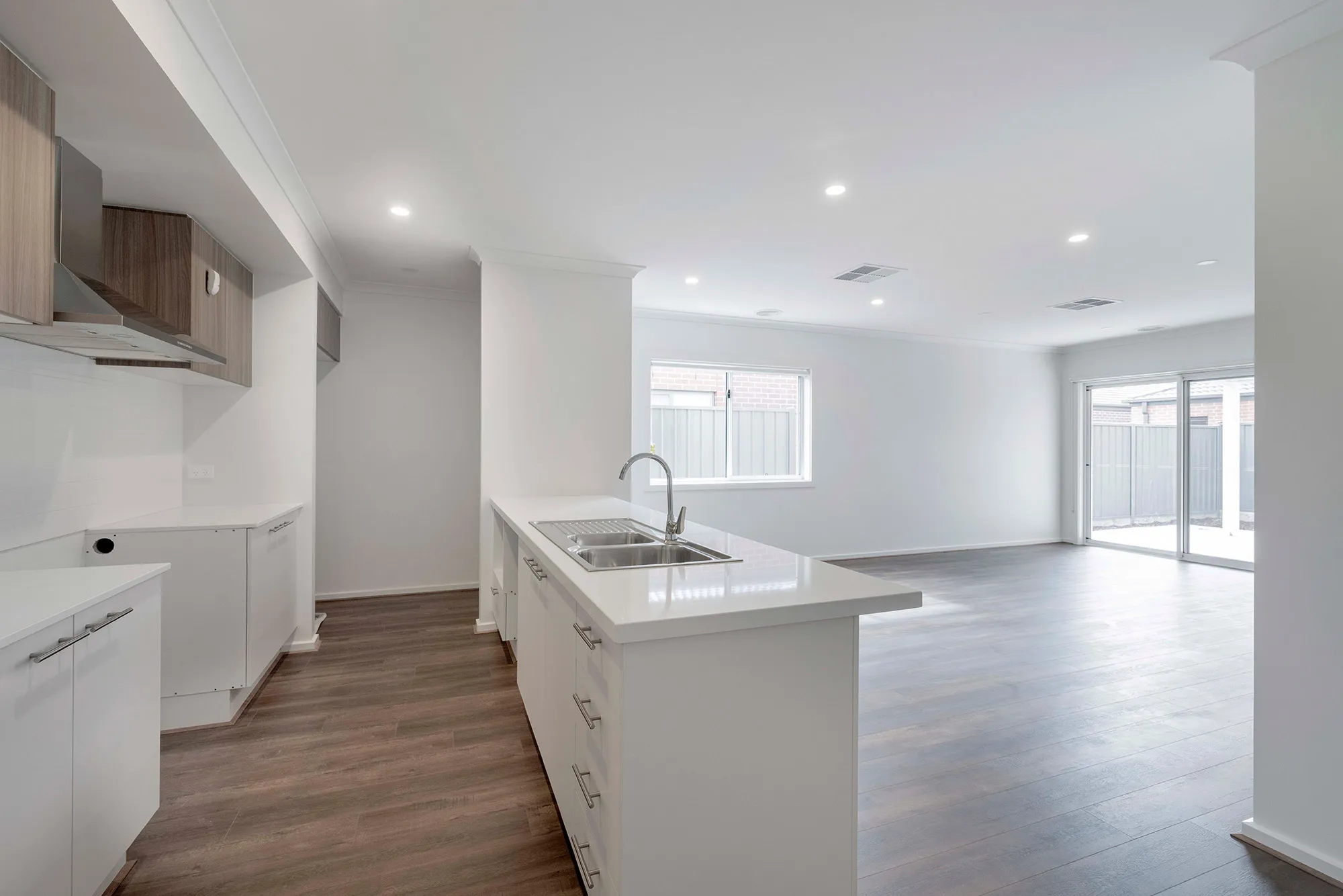 The Mundi 22, a 4-bedroom, 2-bathroom home with a 2-car garage, is suited for a 12.5m+ block. The floor plan of this single-storey home, features a kitchen with a walk-in pantry and an open-plan living space that connects indoors to a beautiful alfresco, ideal for entertaining. A media room and three generously sized bedrooms ensure space for relaxation. The glamorous master suite, with a modern ensuite and grand walk-in robe, provides a perfect adult retreat. Making it the perfect home for upsizing as your family grows.